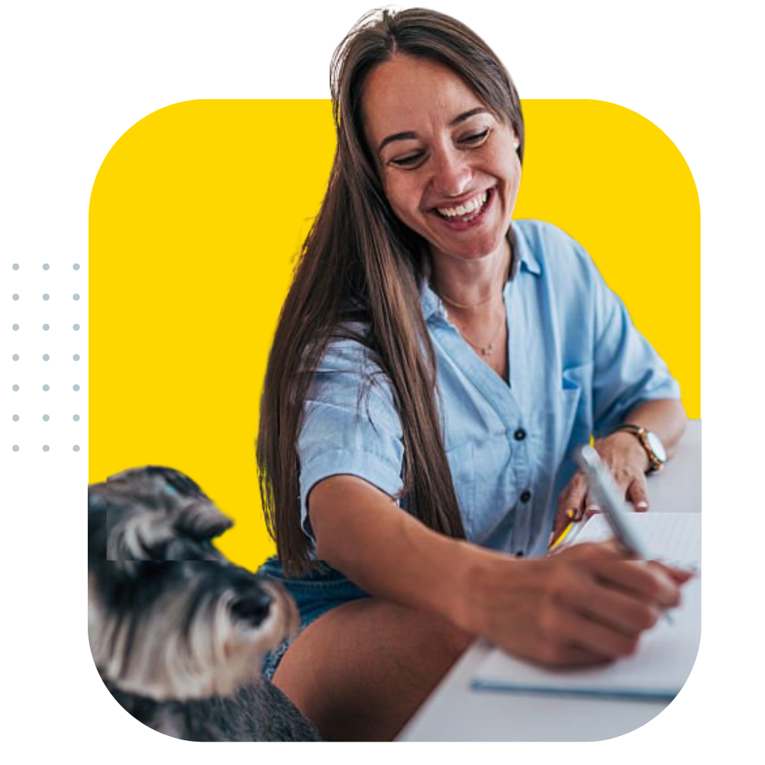 Heute arbeite ich überwiegend online, von zwei Standorten aus – manchmal auch aus einem Café oder am Meer. Immer mit meinen beiden Hunden an meiner Seite.